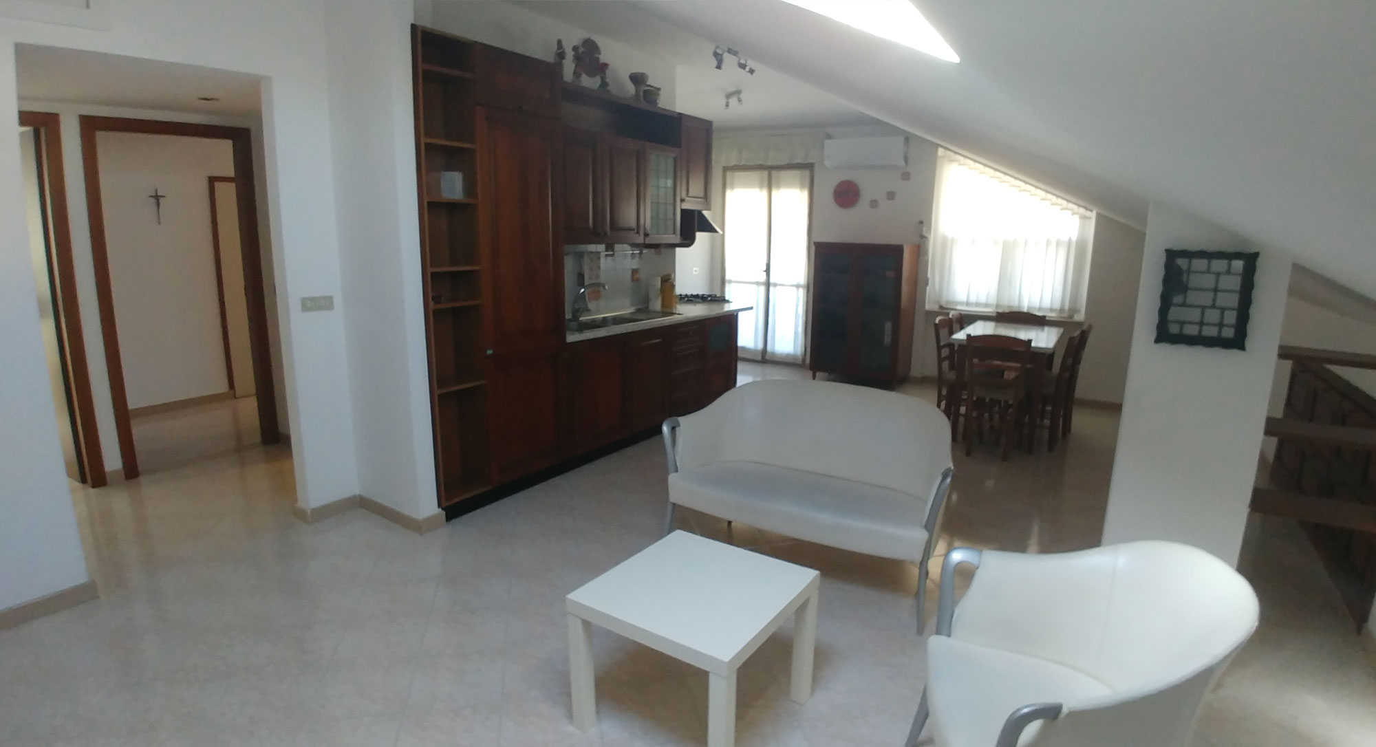 In una silenziosa zona residenziale di Chieti Scalo, sorge un'opportunità unica per chi cerca un nuovo rifugio a pochi passi dal polo universitario e dall'ospedale civile. Situato al 4° piano (senza ascensore), questo attico mansardato di circa 80 mq offre un'esperienza abitativa straordinaria. L'appartamento accoglie gli ospiti con un luminoso ingresso che conduce al generoso soggiorno open space, dove la zona pranzo si fonde con un pratico angolo cottura. La camera matrimoniale e la cameretta offrono spazi rilassanti e riservati, mentre il bagno è progettato con cura per garantire comfort e funzionalità . Una caratteristica distintiva di questa proprietà è il comodo balcone panoramico, arricchito da due piccoli ripostigli, ideale per godersi momenti di relax all'aperto. La collocazione strategica consente di raggiungere rapidamente il cuore dell'attività universitaria e l'importante struttura ospedaliera.