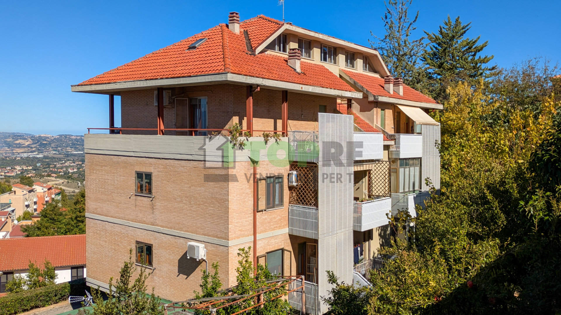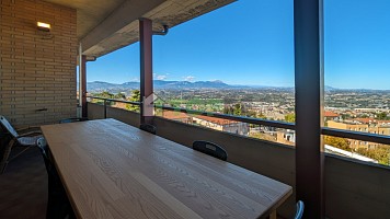 A Chieti, in Via Santarelli, a pochi passi dal centro e in posizione riservata e silenziosa, proponiamo un elegante attico con ampi terrazzi panoramici e balcone perimetrale, completo di luminosa mansarda con camino, per una superficie complessiva di circa 235 mq. Lâimmobile, situato al terzo e quarto piano di una palazzina servita da ascensore, gode di una splendida esposizione e di una vista suggestiva sulla vallata e sul Gran Sasso. Lâappartamento dispone di doppio ingresso, caratteristica che ne consente facilmente la suddivisione in due unità indipendenti. La zona giorno si apre su un accogliente ingresso che conduce al salone doppio con accesso al terrazzo perimetrale, a una spaziosa cucina abitabile con uscita su un comodo terrazzo e a un primo bagno di servizio. La zona notte ospita due camere da letto, uno studio e un ampio bagno con vasca e doccia, tutti con affaccio esterno e accesso diretto ai terrazzi. Una raffinata scala interna in legno conduce alla mansarda, un ambiente ampio e luminoso con camino, zona pranzo panoramica, cucinino, area relax e ulteriori spazi notte con camera, cameretta e bagno. Gli spazi esterni, con esposizione a 360°, offrono la possibilità di vivere la casa allâaperto in ogni momento della giornata, godendo di viste mozzafiato e di unâatmosfera unica, di particolare fascino anche nelle ore serali. Completa la proprietà un piccolo terreno di circa 90 mq, interamente recintato e situato ai piedi del palazzo, ideale da adibire a orto o a grazioso giardino privato. A servizio dellâabitazione sono inoltre presenti due posti auto coperti allâinterno della corte condominiale. Unâabitazione di grande fascino, ideale per chi cerca comfort, privacy e panorami incantevoli nel cuore di Chieti. Per maggiori informazioni o per prenotare una visita, contattaci ai recapiti indicati.
