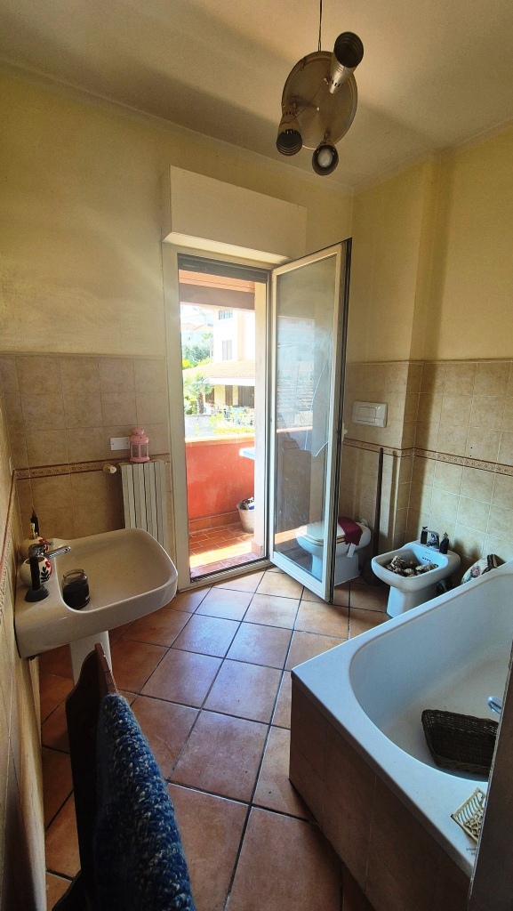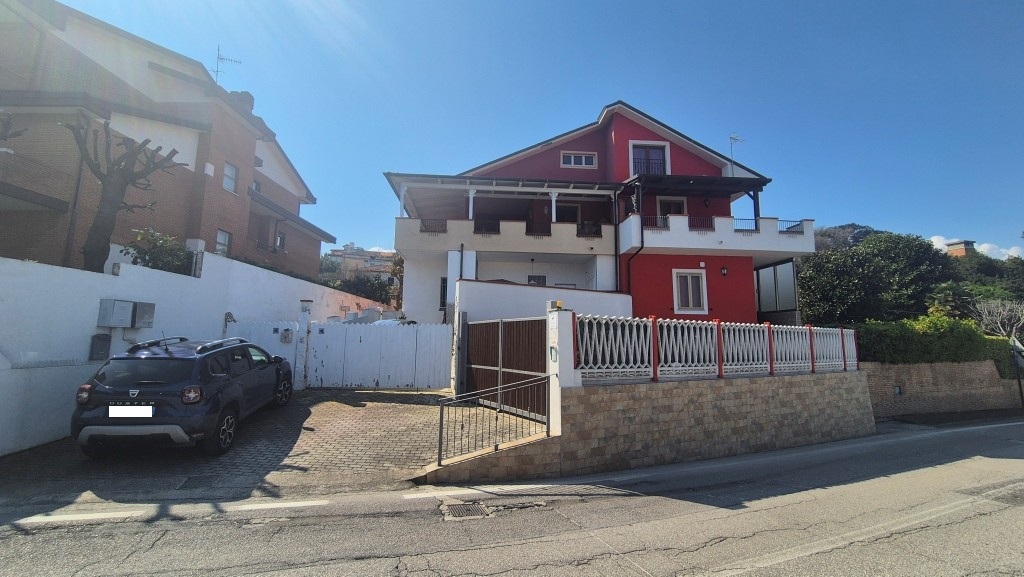 Francavilla al Mare (Chieti), salita di San Franco. Vendita di graziosa porzione di villa bifamiliare, dislocata su tre livelli, composta da ingresso indipendente, carrabile e pedonale, da giardino privato e recintato della consistenza di mq. 500 circa, ampio soggiorno, cucina con tinello dotata di caminetto e forno, tre camere da letto, ampio terrazzo coperto con invidiabile vista mare e balcone perimetrale, doppi servizi igienici dotati rispettivamente di vasca e box doccia, oltre a locale sottotetto in cui ricavare altra ampia camera. Impianto di riscaldamento autonomo. Prezzo trattabile.